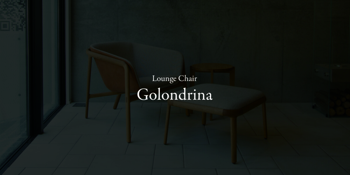 宮崎椅子製作所のラウンジチェア『Golondrina(ゴロンドリーナ)』。Golondrinaとは、スペイン語で「ツバメ」という意味。その名のとおり、ツバメの翼を連想させる美しいフレームが印象的です。ミニマルで洗練された空間にこそぴったりの、特別な一脚です。ナラ材を使用し、座面と外面を異素材で張り分けました。座面は温かみあるファブリックを、外面には上質な革張りを採用。チェアに合わせたオットマンも、座面と同じファブリックで統一し、心地よい一体感が生まれました。ぜひ触れて、座って、その心地よさをご体感ください。